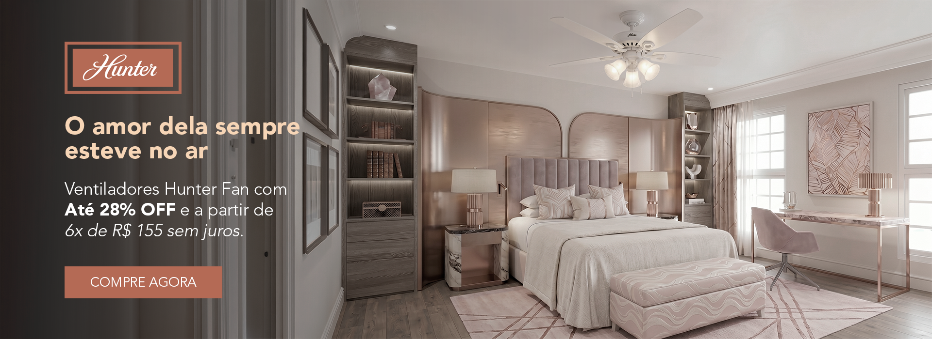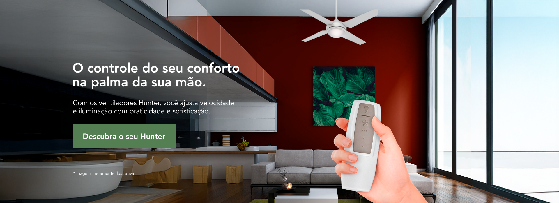 Super satisfeito! O ventilador Hunter Fan tem um design moderno e funciona muito bem. Ideal para ambientes maiores!